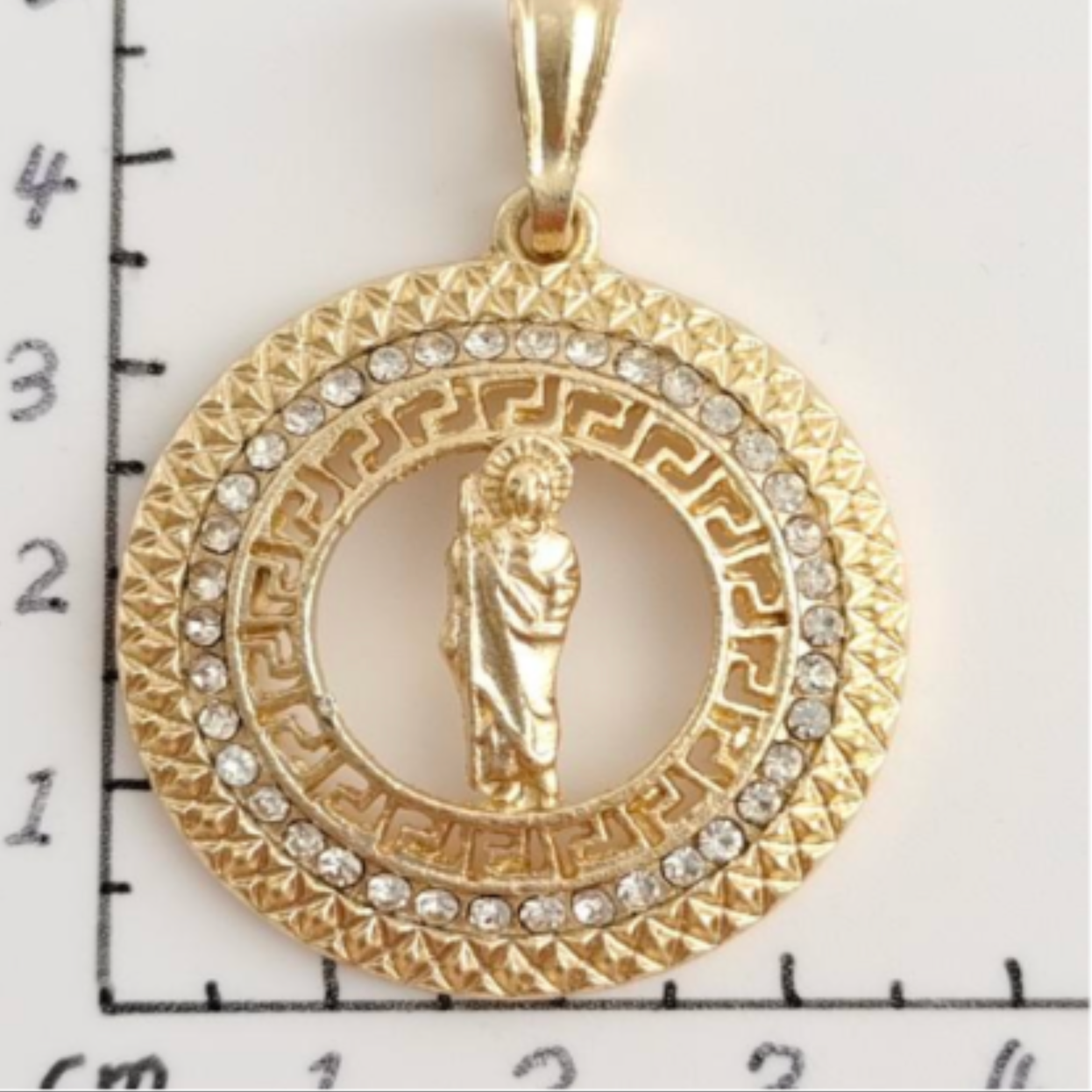 Colgante bañada en oro que presenta a San Judas. Acabado con cinco capas de baño para una durabilidad excepcional y un brillo duradero.